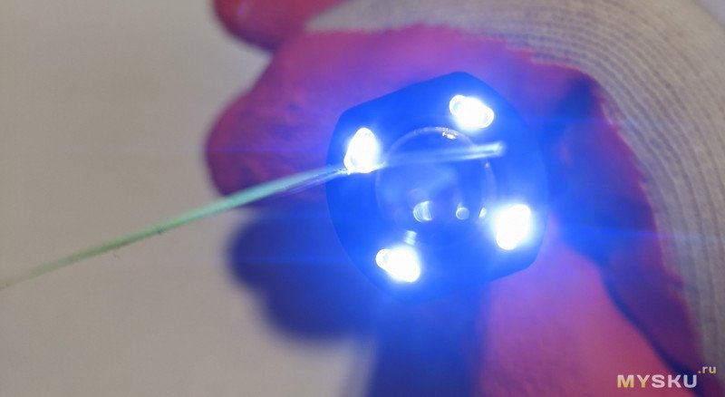 Фонарик — это 4 светодиода. Они яркие, но свет холодный. Многим такое свечение нравится больше, но лично я предпочёл бы нейтрально белый (~4500K).