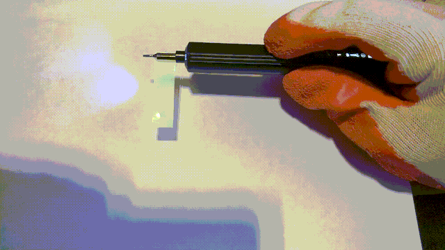 Когда мы нажимаем кнопку, отвёртка стоит на месте, а скорость вращения регулируется гироскопом.