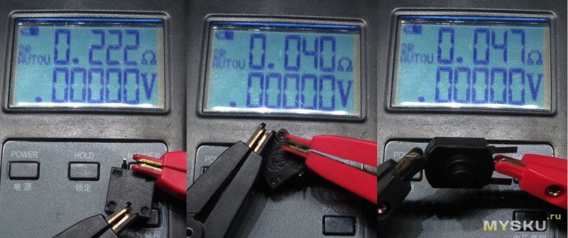 Для всех переключателей заявлен ток 1А. Проверим сопротивление контактов