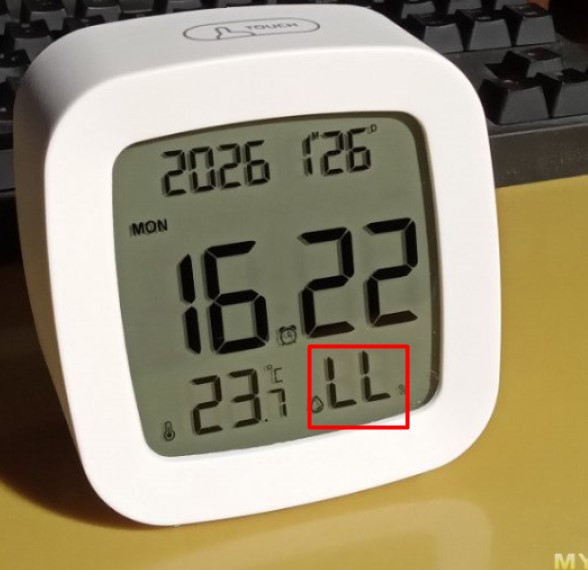 Понравился внешний вид, что экран немного под наклоном. Обычно такие игрушки влажность, особенно низкую показывают так себе, а температуру — хорошо. Недаром на фото влажность LL — ниже низкого, видно что фото сделано зимой.