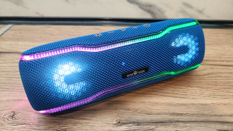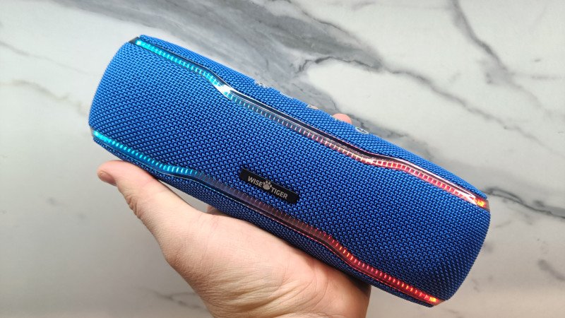 Беспроводная колонка WISETIGER F10C — прекрасный выбор для загородного отдыха, прогулок на природе или тихих вечеров на даче. Громкости вполне достаточно, чтобы развлечь небольшую компанию друзей, а отключаемая подсветка продлит время работы устройства. Качество звука оказалось на достойном уровне: два активных динамика в совокупности с пассивным излучателем на дне колонки создают объемное, насыщенное звучание. Суммарная мощность динамиков составляет всего 14 Вт.