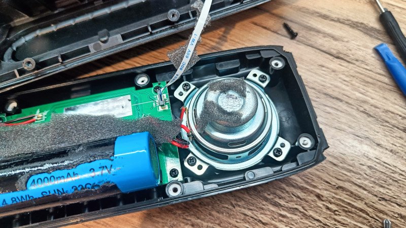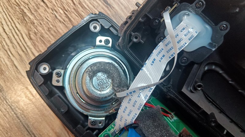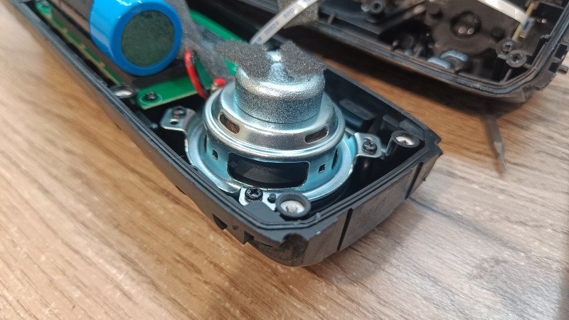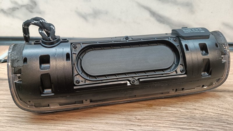 Между ножками располагается пассивный излучатель прямоугольной формы. Он скрыт под оболочкой и детально можно увидеть лишь при разборке.
