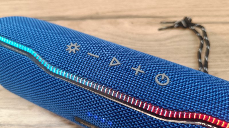 Кнопка «подсветки» — всего 3 режима и полное отключение. Переключение по кругу, выбранный режим запоминается. Подсветка может работать так: подсветка только динамиков, подсветка световодов и полная подсветка динамиков и световодов. Подветка мерцает в так с музыкой, но в своем стиле, который изменить не получится.