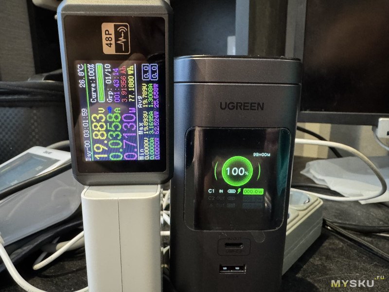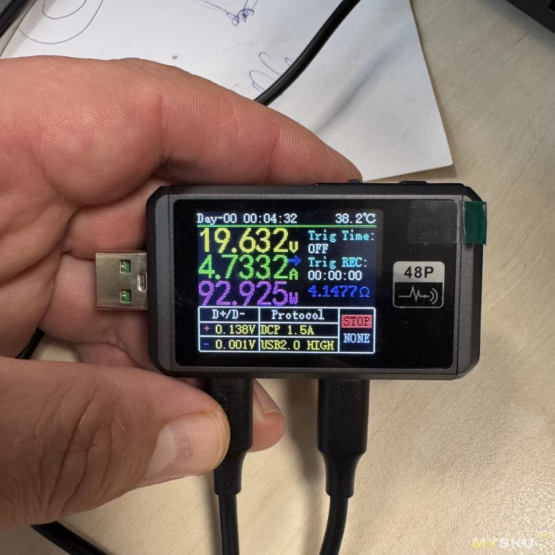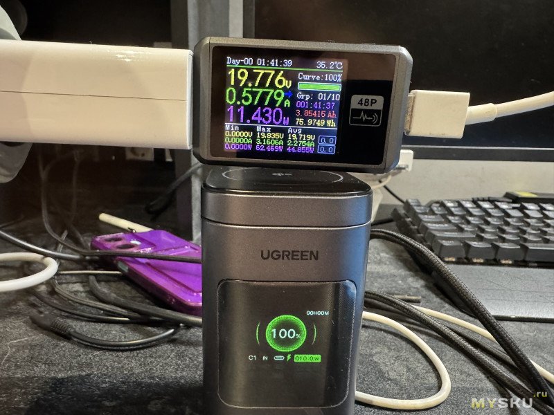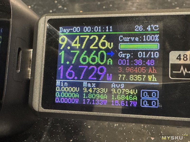 Изначально, когда двевайс ко мне приехал, я его зарядил-разрядил и так пару раз. Потом подкинул тестер. Заряжал 125 W зарядным Xiaomi