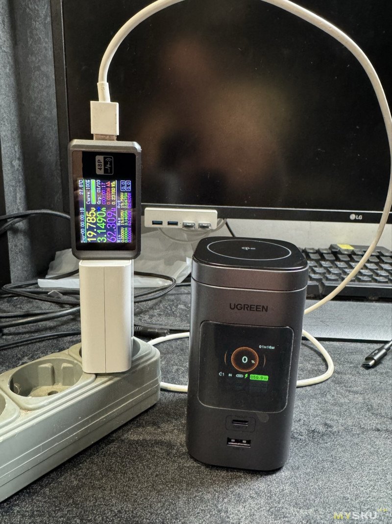 Повербанк обещает зарядиться за один час и шестнадцать минут. На самом же деле ему потребуется на это более полутора часов