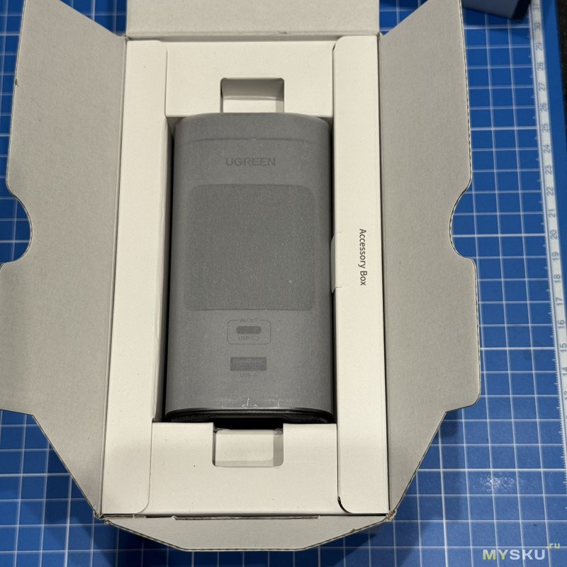 Покупал я её для рыбацких нужд, но по итогу в ней поселились различные девайсы и провода зарядки. Там повербанки, различные фонарики, рации и прочее. Соответственно туда же отправился и герой обзора в своём чехле. А потом этот чехол там же и проездил всё это время на дне коробки, отдельно от повербанка. Поцарапался ли при этом повербанк? Да я не сказал бы. Состояние вы можете видеть на фото. Большинство из них сделаны на днях.