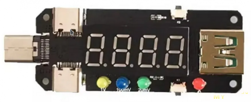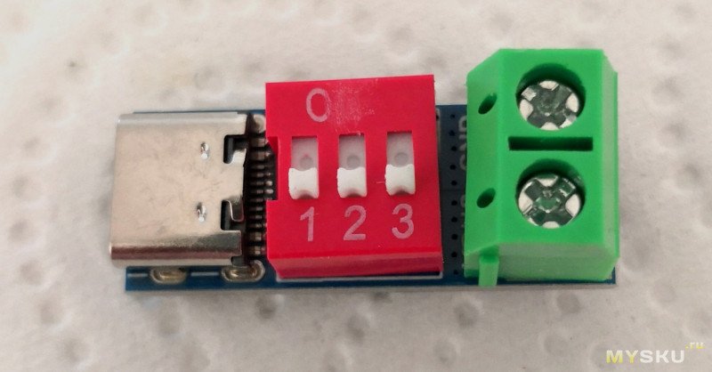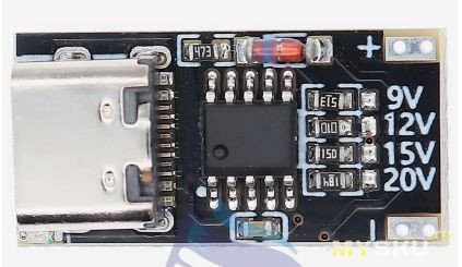 На триггере ничего не менял, перемычки в положении 28В, но проверим на другом блоке питания, от Ugreen 65W. Там один USB-C порт поддерживает максимум 20В (их и получаем), а другой USB-C порт и вовсе — только 12В (эти же 12В и получим).
