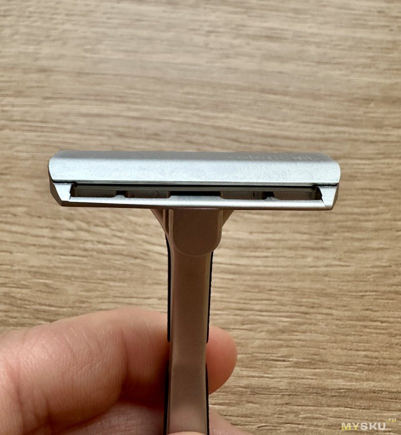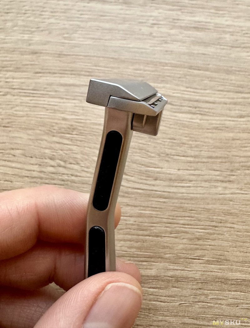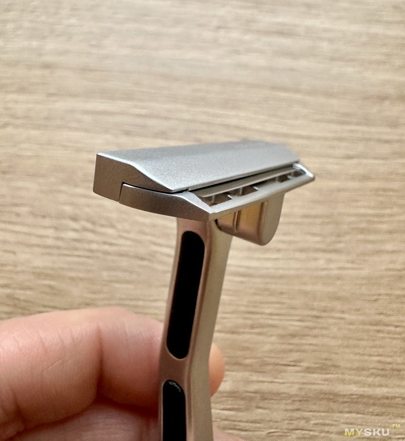 Интересное и весьма необычное решение, но почему бы и нет — что-то новенькое. Непосредственно на бритьё это никак не влияет. При желании бритву можно будет разобрать, но такую необходимость я слабо представляю, так как места она и так занимает мало. Ну только если захочется основательно её почистить со временем. Хотя я предпочитаю хорошенько промывать и вытирать насухо станок сразу после бритья.