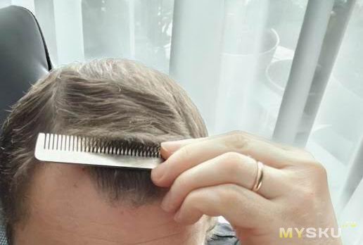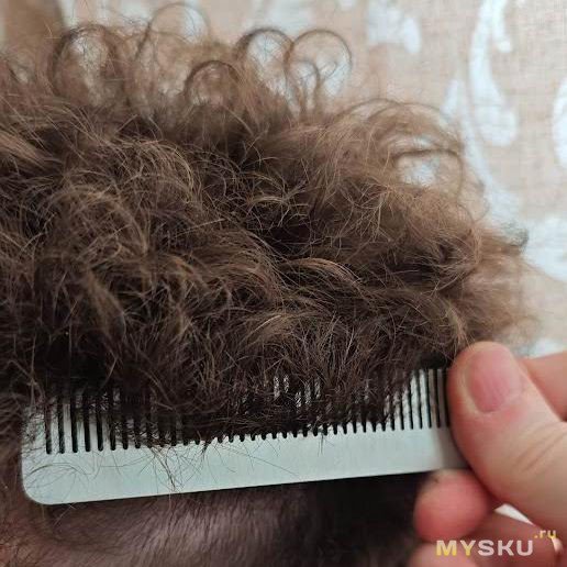 А вот у сына шевелюра помощнее, его волосы гораздо жестче, длиннее и сильно завиваются. Для него такая расческа подходит плохо, ему, чтобы расчесать такую шевелюру, нужен гребен посолидней и по своим габаритам, и по размеру зубьев.