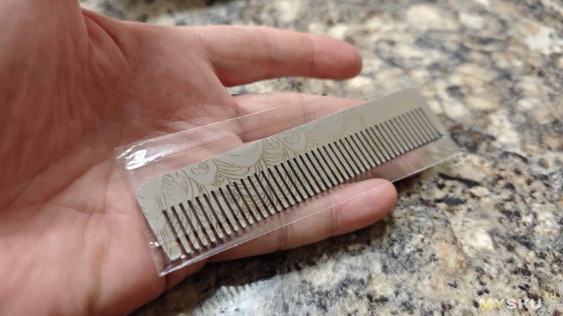 У меня когда-то была подобная металлическая расчёска еще советского производства, как сейчас помню с выштампованной ценой в 35 копеек. Она меня частенько выручала в командировках, когда еще особого гостиничного сервиса не было в наличии (за разумные деньги) и приходилось всё своё брать с собой. Но работу я поменял, в командировки больше не ездил и как-то расчёска растворилась в остальном домашнем скарбе. Посему ничто не вечно под луной, даже металлическая расческа. Сейчас же вновь в ней возникла потребность, а найти что-то потерянное дома сложнее, чем купить новое.