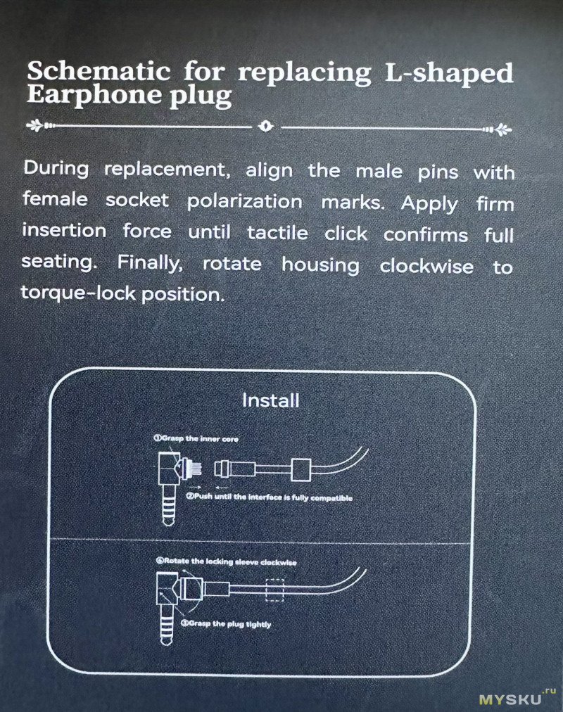 Приятной особенностью является наличие сменного штекера и наличие угловых штекеров 3.5 мм и 4.4 мм в комплекте. Замена выполняется очень легко — откручиваем муфту, фиксирующую штекер