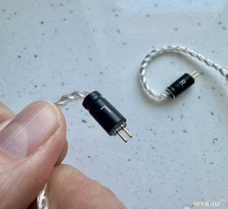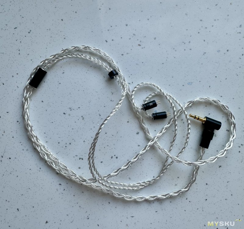 Кабель достаточно легкий, заушины легко ложатся на своё место при надевании наушников и не вызывают дискомфорта, чему также способствует легкий вес кабеля. Коннекторы выполнены качественно. На кабеле также присутствует регулировочное колечко.
