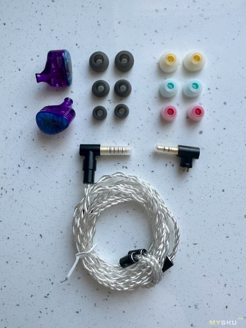 Посадка у наушников достаточно удобная не смотря на то, что корпус наушников не имеет выраженных анатомических вырезов — дискомфорта при длительном ношении наушники не вызывают и на уши не давят. Кабель по весу фактически не ощущается, не давит заушинами и не натирает. Кабель конечно не дорогой, но по качеству в любом случае несколько лучше, чем стоковый у KZ. К чрезмерному запутыванию не склонен. Что касается эстетической составляющей, которая безусловно также влияет на звук
