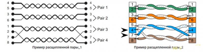 Патчкорд сначала обжат заведомо неправильно: