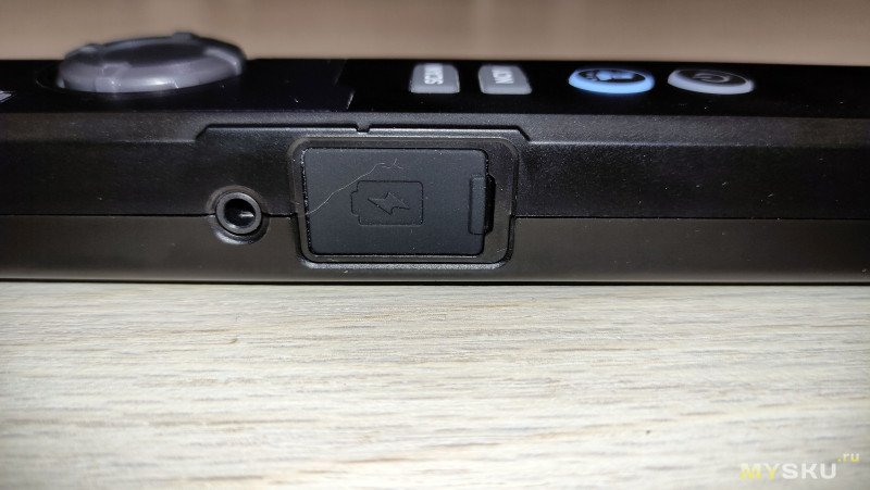 С нижней части устройства имеет порт для зарядки и обновления прошивки, закрытый резиновой заглушкой, так же рядом с портом под заглушкой имеется отверстие для сувания туда чего нибудь тонкого:) В общем кнопка сброса устройства.