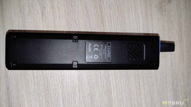 Осмотрим основной модуль устройства:Лицевая часть снабжена дисплеем с диагональю 2.4 дюйма. Качество дисплея среднее, как на стареньких кнопочных телефонах пиксели крупные, но больше сюда в принципе и не нужно, 6 кнопками управления, 4 стрелочки для навигации между функциями, Кнопка M для провала в выбранный пункт меню, кнопка питания с коротким нажатием работает как выход из пункта меню, с длинным как включение и выключение устройства. Так же на лицевой панели имеется трехцветный светодиодный индикатор, который горит синим при включенном устройстве, зеленым при успешном прохождении теста и красным при ошибке или провале теста.