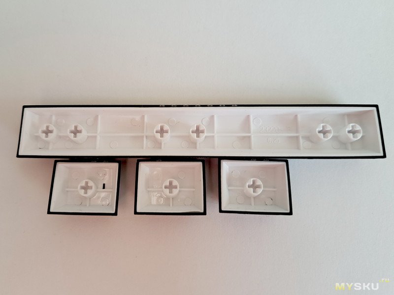 Колпачки из PBT пластика изготовлены методом двойного литья. Значит, символы продержатся максимально долго. А вот акцентные кейкапы из ABS пластика, с нанесением символов «шелкографией», теоретически менее долговечны. Хорошо, что у них есть замена)))