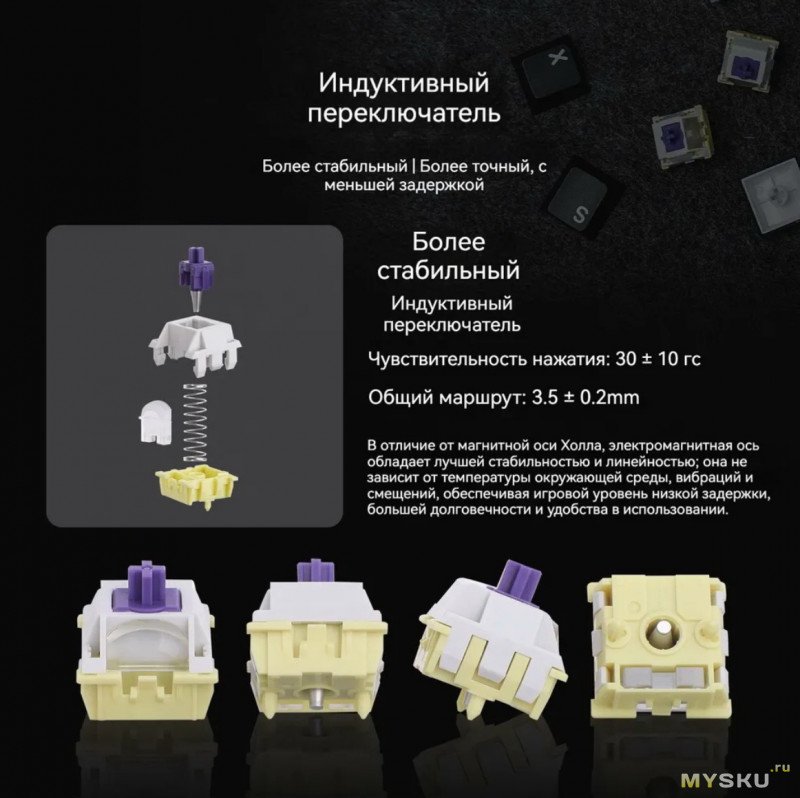Конечно покупать такое я бы не стал (огрызок без подсветки), но чисто технически индуктивные свичи очень интересная вещь. Как минимум гибкими настройками.