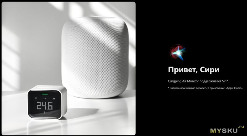 Устройство работает с Apple Home, Mi Home и Qingping+.