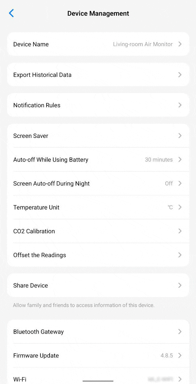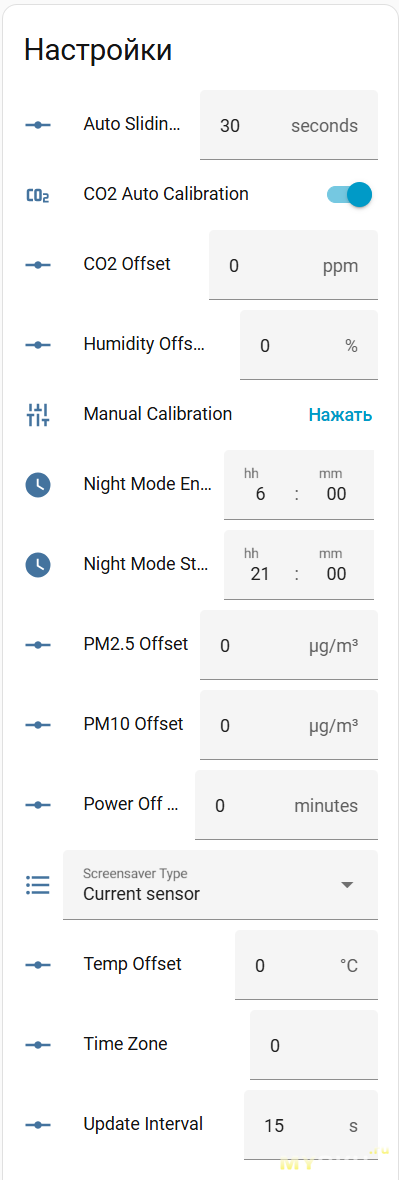 - калибровка CO₂ (здесь она, как и в прошлом герое обзора, выполняется как автоматически, так и вручную, путём вынесения устройства на свежий воздух и запуском функции на 5 минут)