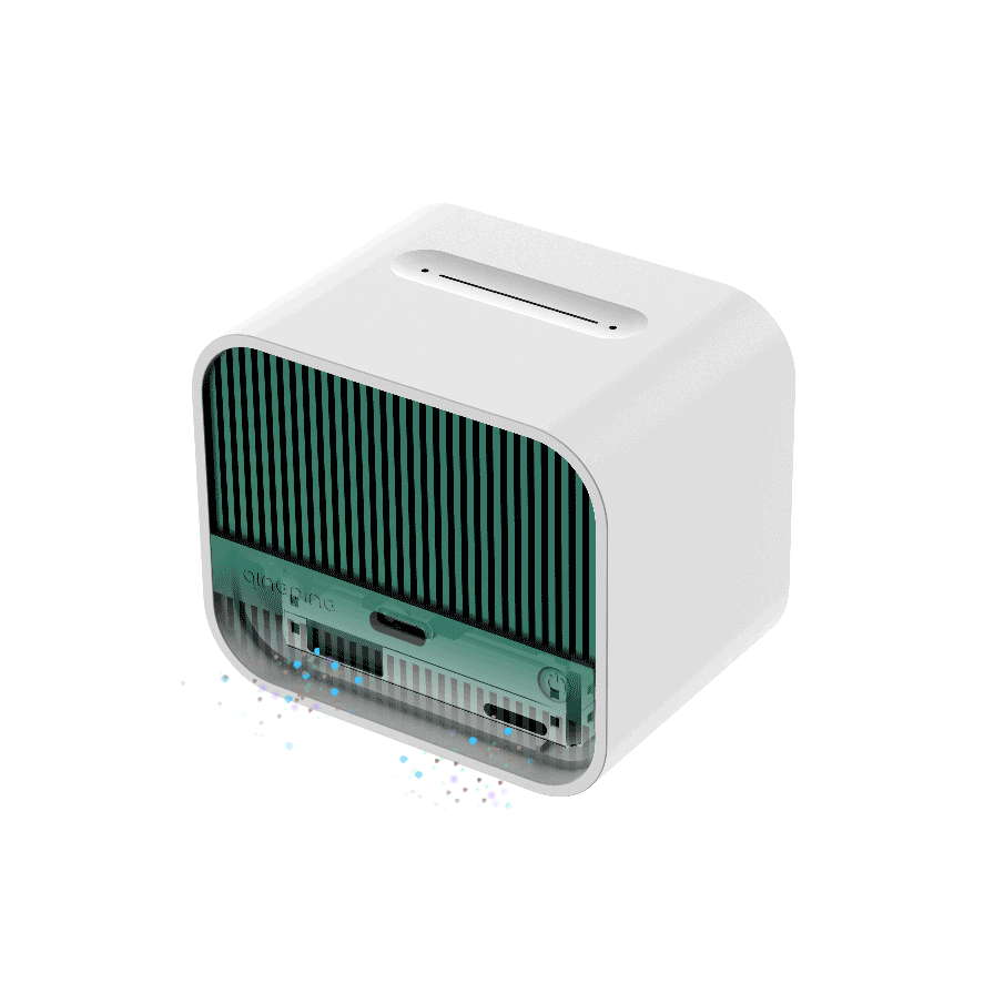 Внутри корпуса, расположена специальная кассета — датчик частиц PM 2.5 и 10. Она в себе содержит вентилятор. При непосредственном поднесении устройства к уху, его работу слышно. На расстоянии 30см от прибора, работу слышно только, если прислушиваться, а на расстоянии вытянутой руки (~70см), работу не слышно вообще.