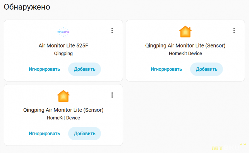 Home Assistant сразу увидел устройство, причём как в интеграции Qingping, так и в HomeKit.