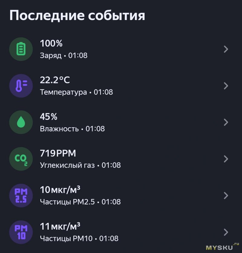 Показания по пыли РМ2.5/РМ10 — у меня разняться (т.к. занимаюсь 3D печатью, после пары часов работы принтера в воздухе не так чисто, как бы хотелось)