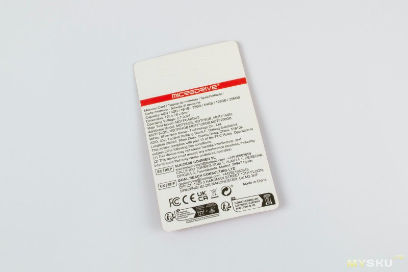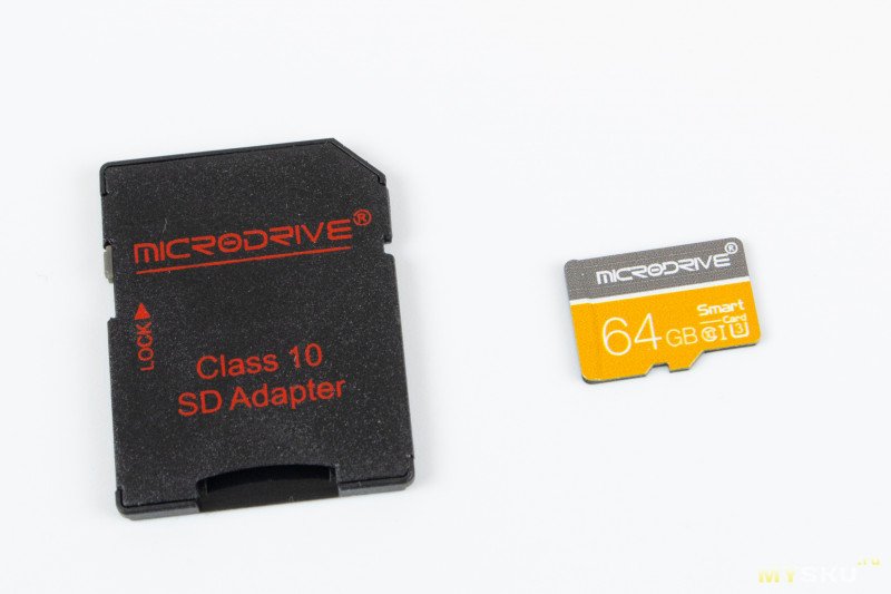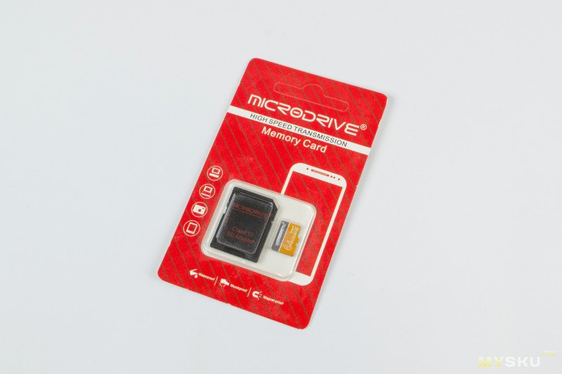 Первая карта — это нечто от Microdrive (брал за 219₽), на самой карте написано Smart card, судя по упаковке номер модели на 64 гига — MDTF64GB. Из заявленного на карте — Class 10, U3, UHS-I.