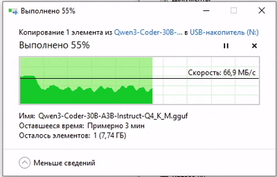 Возьмем файл, размером почти 18 ГБ и запишем его на наши карточки.