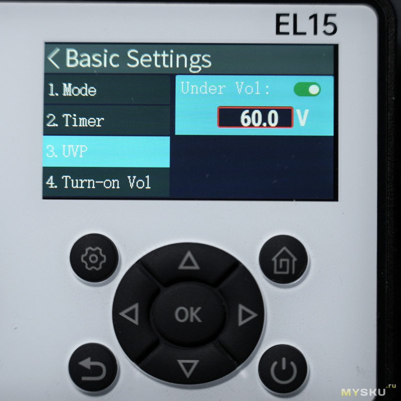— вкл./выкл. UVP (напряжение авто-выключения теста, диапазон 0.01 — 60В)