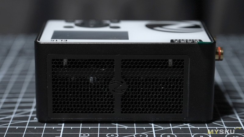 А выброс тёплого воздуха происходит с противоположной стороны. Эти две стенки покрыты вставками с очень мелкой сеткой, поначалу подумал что пластик, но на самом деле сетки металлические.