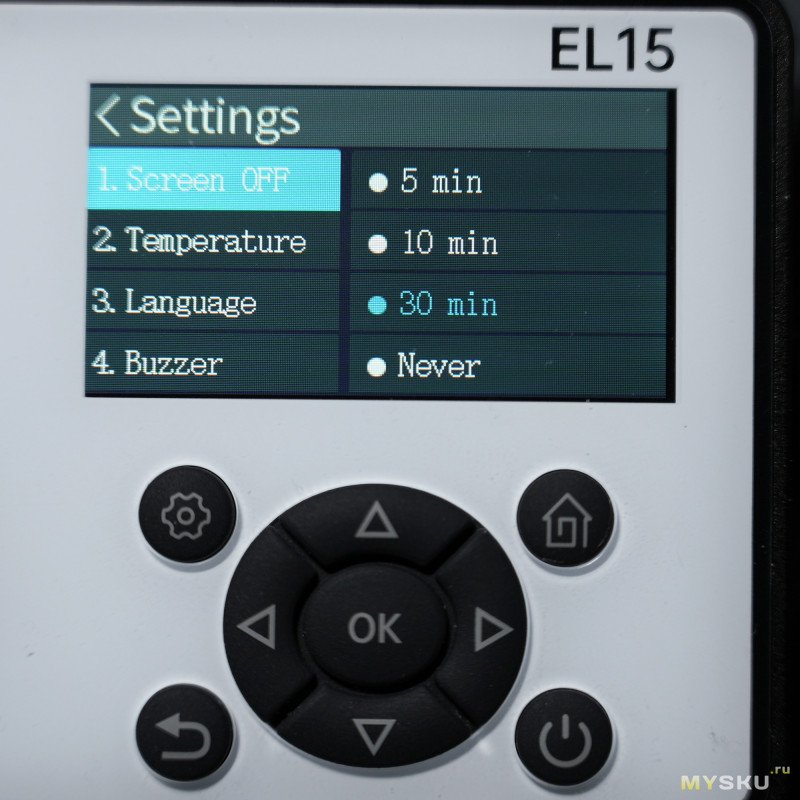 1) авто-выключение дисплея (5 мин, 10 мин, 30 мин, никогда)