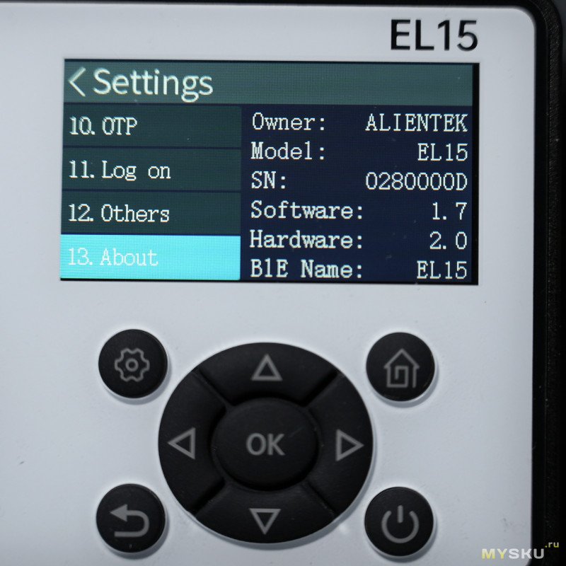 13) About (версия прошивки, пока актуальная)