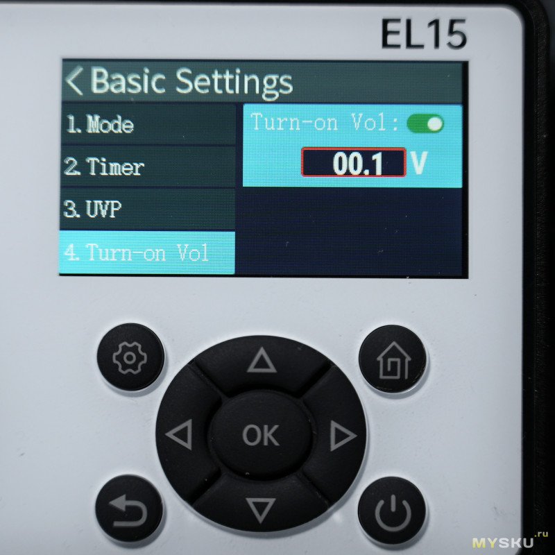 — вкл./выкл. Turn-on Vol (напряжение авто-запуска теста диапазон 0.01 — 60В)