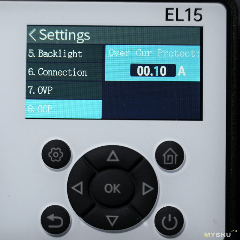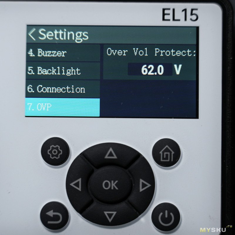 7) защита от перенапряжения OVP (0.05 — 62 В)