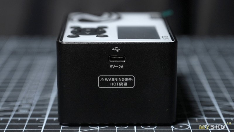 На противоположной стороне входной USB-C разъём для питания девайса, указанные требования — 5В/2А.