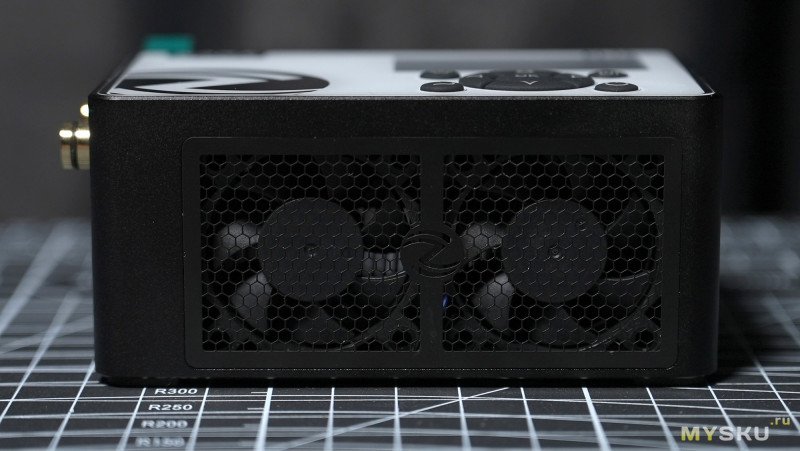 Система охлаждения построена на массивной радиаторе и двух вентиляторах формата 3510 с максимальными оборотами до 13000 RPM, PID-регулировка оборотов автоматическая. Со стороны вентиляторов идёт забор свежего воздуха.