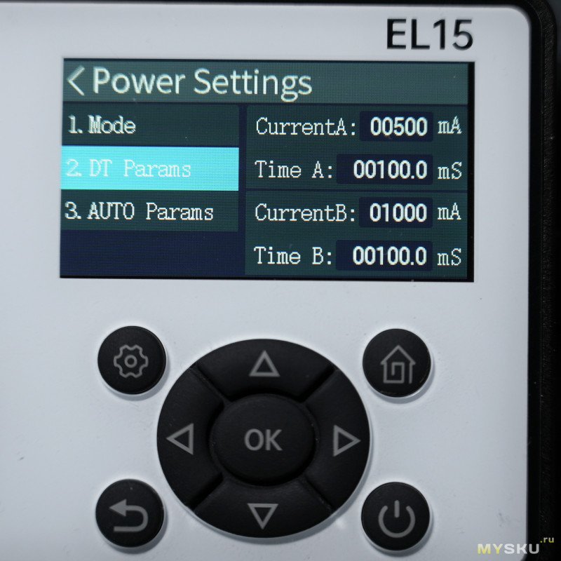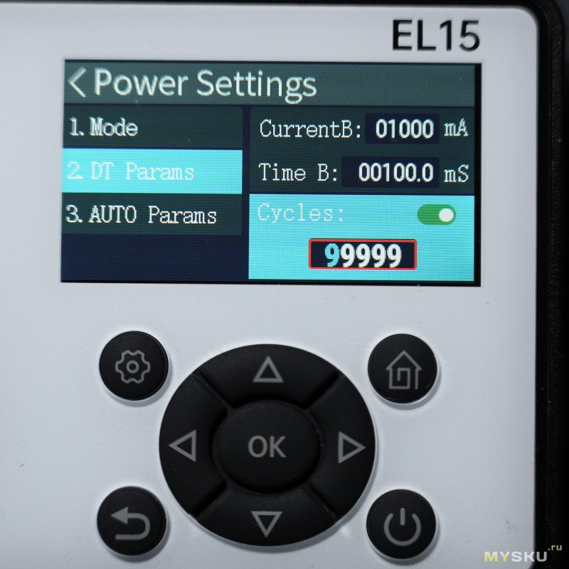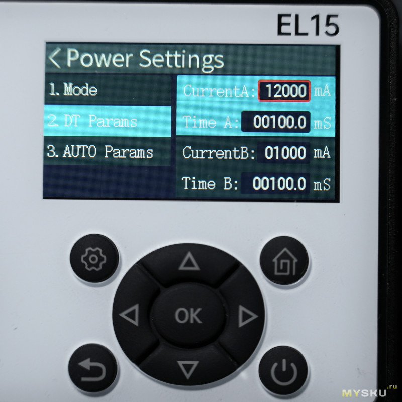 В режиме DCR в двух точках настраиваются токи (от 1мА до 12А) и время импульса 1с — 99с. Забыл добавить скрин: если установлен режим DCR, то на главном экране Battery в правой части будут отображаться две строки с настроенными токами и на третьей строке измеренное сопротивление.