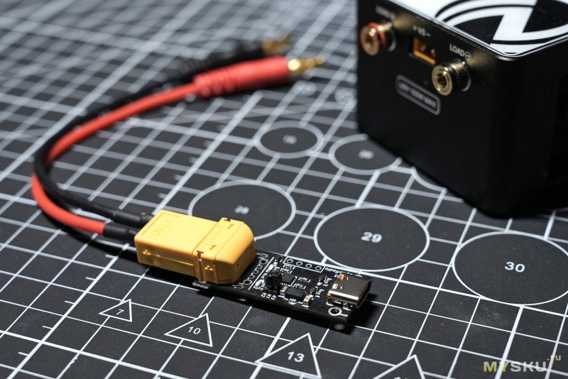 Попробуем нагрузить на 100% блок питания Baseus 140W. Так как на входе нагрузки только banana 4мм, то специально для таких тестов приобрёл PD-триггер с поддержкой 5-28В и переключателями на перемычках и шнурок XT-60 <-> banana.