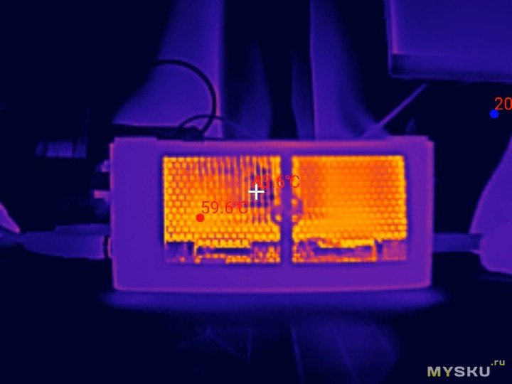 Нагрев с видом через тепловизор.