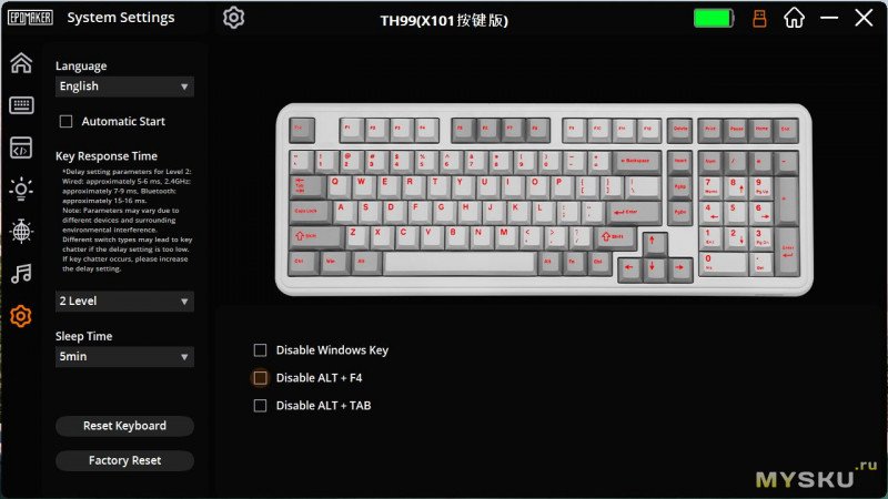 Запаса автономности хватит несколько дней активного использования с включённой подсветкой.Программа для ПК (с официального сайта), VIA не поддерживает:
