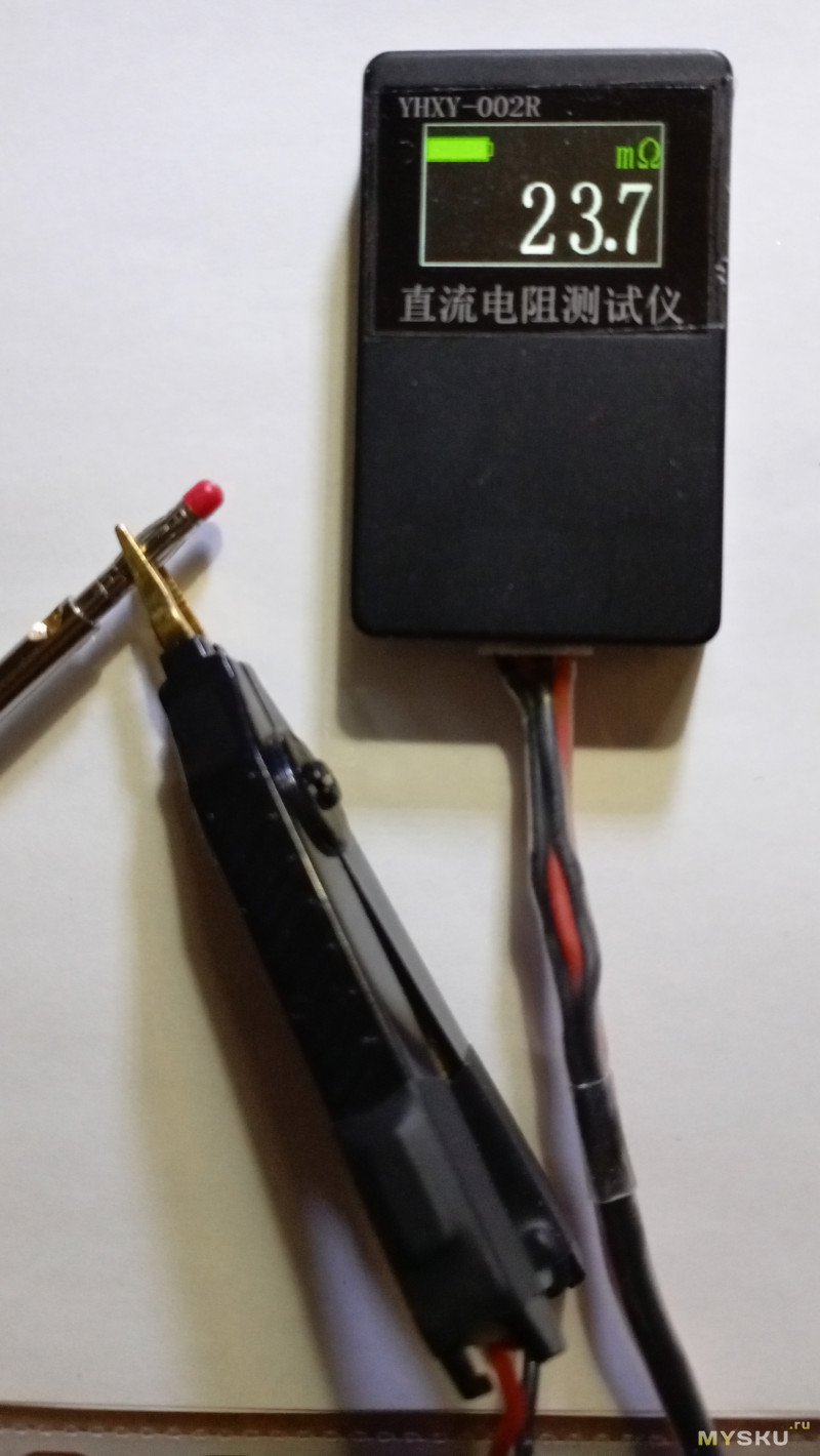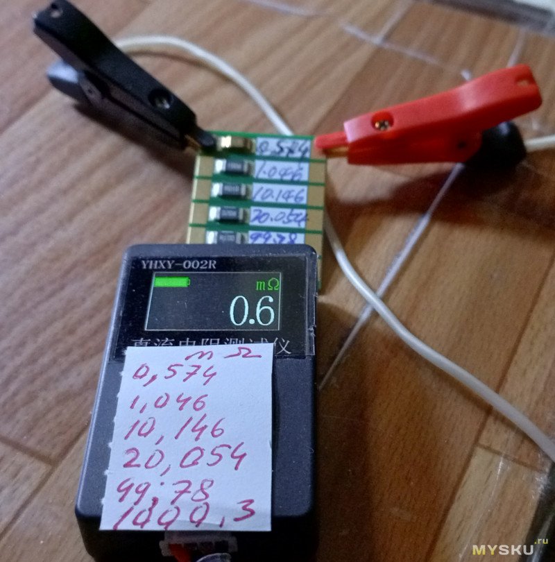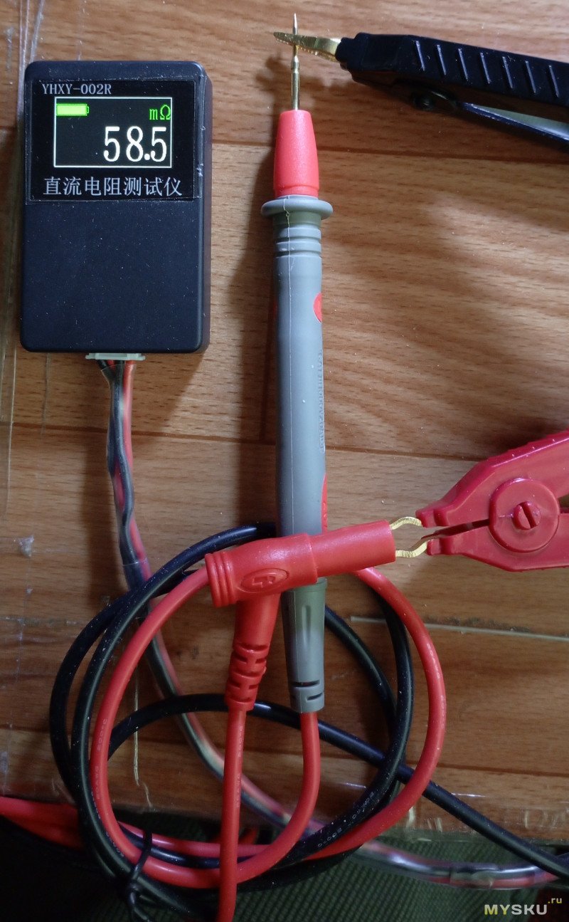 Прибор которым я измеряю малые сопротивления предназначен для этого — миллиомметр HpLive YHXY-002R с диапазоном измерений 0,1 миллиом… 20 ом и базовой погрешностью 0,03% использующий четырёх проводной метод измерений и проверенный в метрологической лаборатории — его показаниям можно доверять.