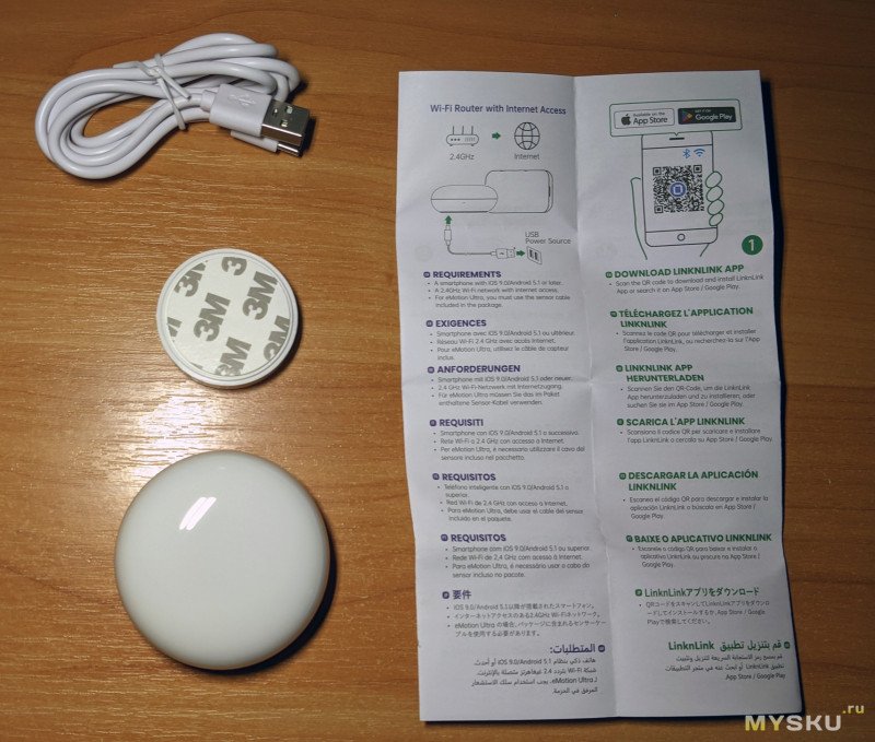 Комплект — это инструкция на английском языке, устройство, кабель TYPE C и крепление.