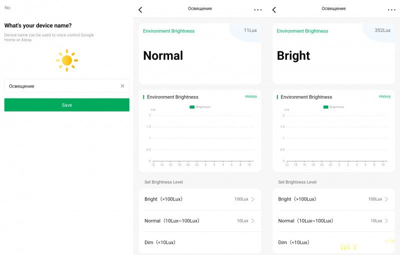 Датчик освещённости — работает. Настройки гибкие. Насколько точно он определяет люксы сказать не могу, так как нет профессионального прибора, но обычное освещение от яркого и от темноты отличает хорошо.