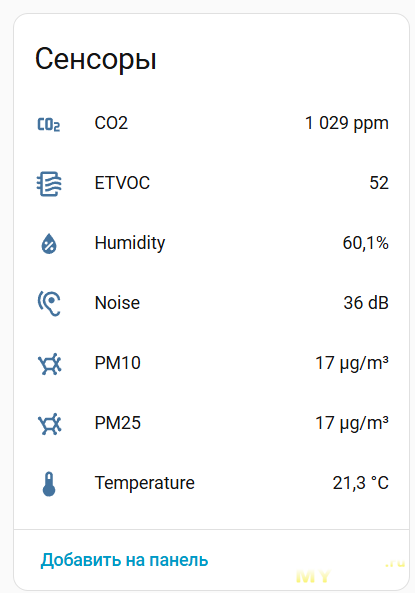 Как видите, всё достаточно легко и просто. Главное условие — Air Monitor 2 и HA должны быть в одной сети.