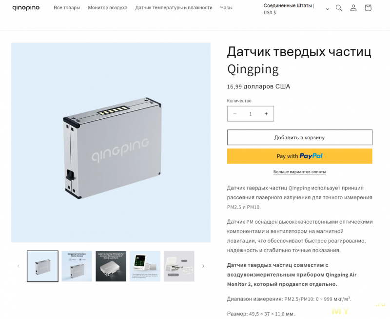 Датчик, к слову, продаётся и на официальном сайте Qingping. Стоит 17 долларов.