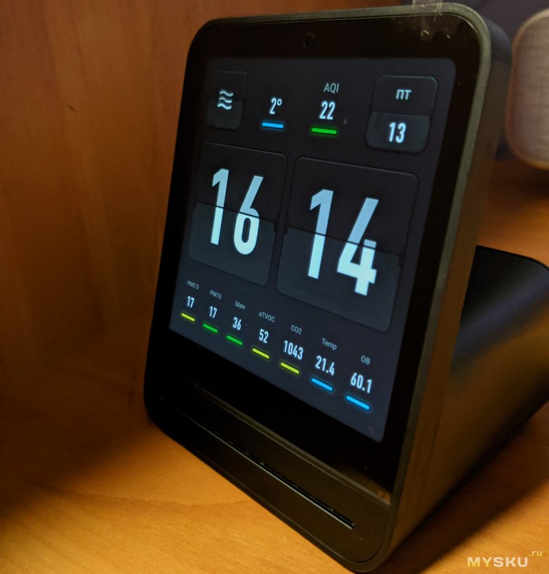 Будильник — самое дешёвое устройство производителя. Из датчиков у него только температура и влажность. Как часы он достаточно стильный и приятный для глаз. Дисплей чёткий, подсветка очень приятная. Но управление им происходит только со смартфона. Многие в комментариях отметили, что это недостаток. Возможно. Но если вы на пятидневке, то скорее всего каждый день встаёте в одно и то же время. В таком случае, один раз установили и пользуетесь.