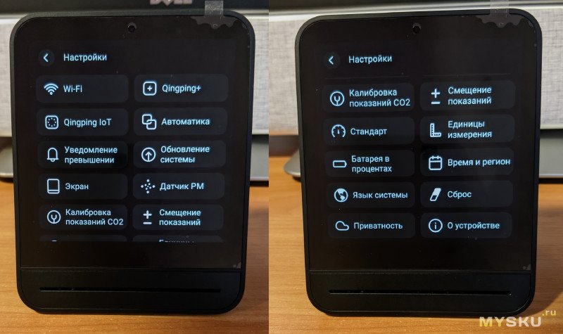 Air Monitor 2 (герой обзора) — из того, что уже сказано, могу обобщить, что устройство для тех, кто не готов соглашаться на меньшее. Оно дорогое, но в то же время очень классное, стильное, с большим сенсорным дисплеем, полностью автономной настройкой (прямо на самом устройстве). Тоже для дома или офиса, рассчитанное на работу от сети, но и батарею на борту имеет.