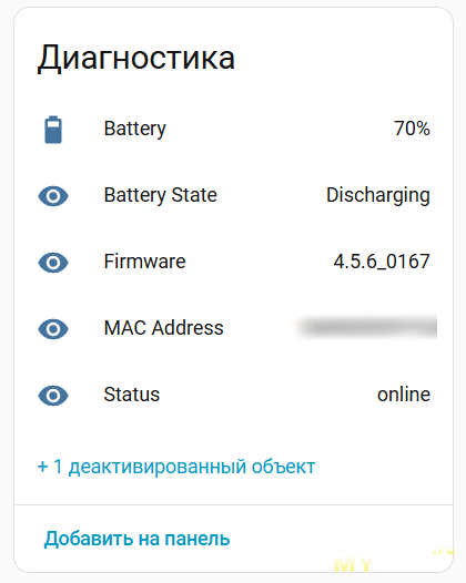 Вот такие метрики и настройки доступны в Home Assistant. Это доступно без доступа в интернет, главное, чтобы устройство было в одной сети.