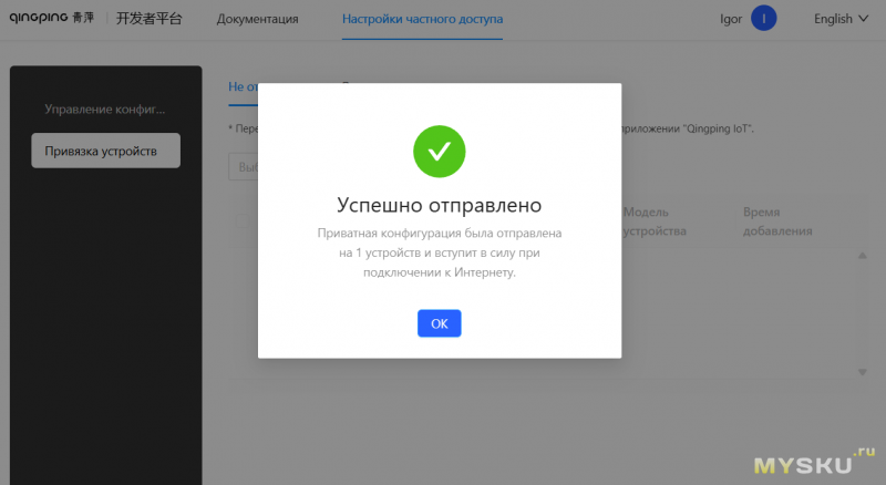 Затем перейти во второй раздел (привязка устройств), выбрать там вашу модель (если не нашло автоматически), а затем выбрать «отправить конфигурацию» и выбрать созданную ранее MQTT-конфигурацию.